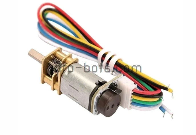 El micromotor N20 puede girar tanto en sentido horario como anti horario. Cuenta con un eje en forma de D de 3mm en el que se puede montar fácilmente un cubo de eje de 3 mm para fijar elementos como una rueda, un aspa de ventilador u otros.