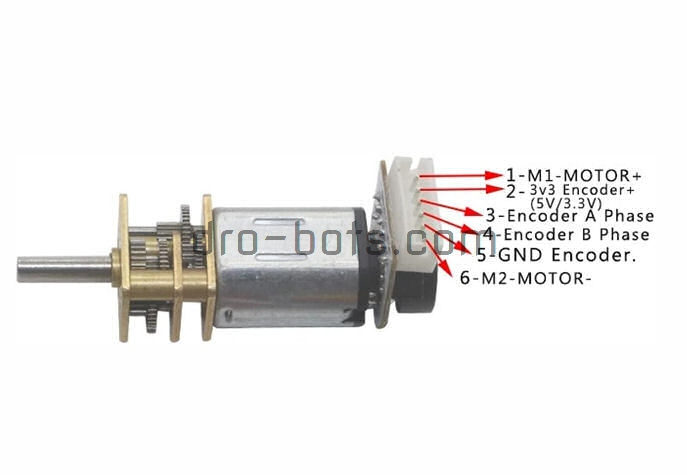 Las salidas del codificador se pueden leer desde los dos canales (C1, C2). Cada rotación tiene aproximadamente 358 pulsos.